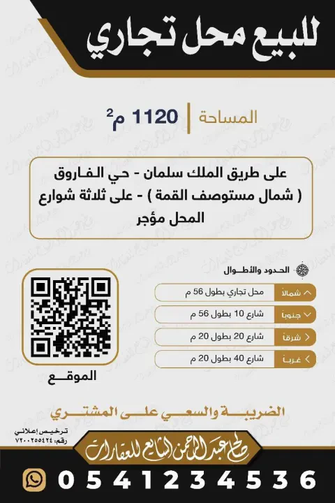 طلب اتصال | محل تجاري للبيع في حي الفاروق | مكتب صالح عبدالرحمن الشايع للعقارات